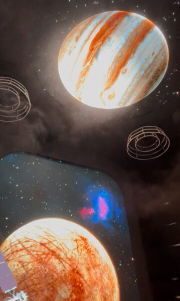 アメリカ館。カルチャーなどいろいろ紹介はあるのですが、たぶん言いたいことはこれに尽きると思います。55年前の展示がどんなだったかは知りませんが「月の石」が有名でしたよね。そこから紆余曲折はあったのでしょうがずっと宇宙を見続けているんだな…と。そしてその頃から思えば技術は目覚ましい発展を遂げているにもかかわらず、逆にたった55年程度じゃ宇宙は身近にならないし、そんな甘くないってことなんでしょう。