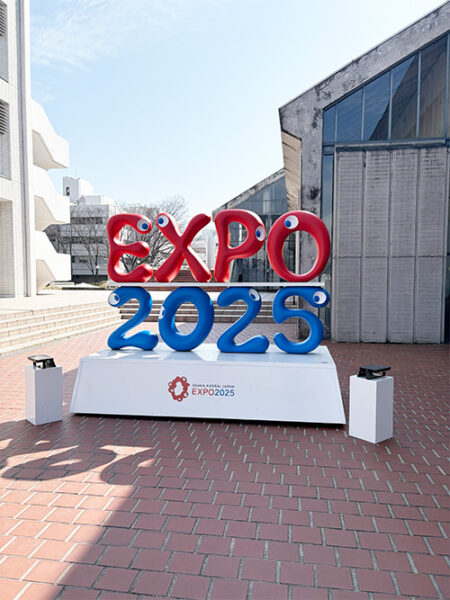 ミャクミャクのキャラデザをされた山下さんの母校でもある関係からか昨年の関西万博のモニュメントやキャラクターもそこかしこにちりばめられています。