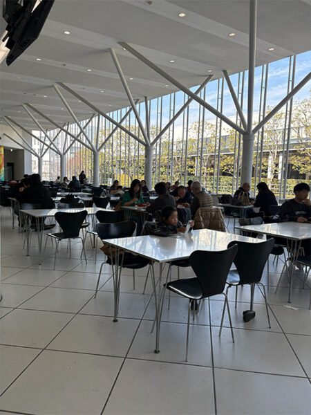 歩き疲れたので、なかなか来ない食堂で昼食。海外のお客さんもちらほら。学生さんのご家族かもしれません。